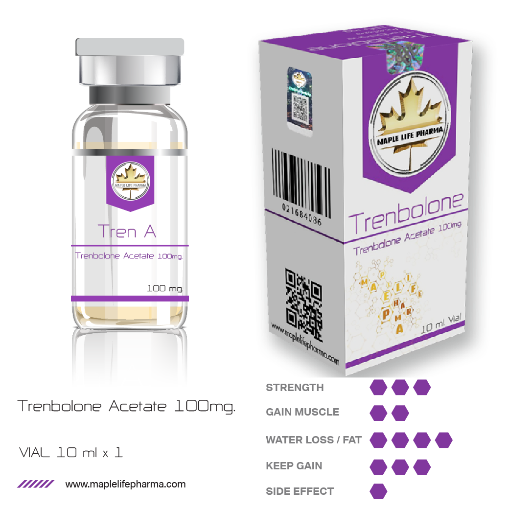 Trenbolone Acetate is the most popular for Trenbolone. Because it is a fast-acting ester. It reaches the bloodstream quickly. Trenbolone has for greater anabolic and androgenic properties than Testosterone. Trenbolone greatly improves the absorption rate and utilization of nutrients in the food, which will be used much more efficiently, resulting in highly increased nitrogen retention in muscle tissue. Maple.Tren-A cannot aromatize and there will be zero water retention from its use. These traits make Maple.Tren-A one of the most powerful steroids available and result are guaranteed whether the goal is building muscle or getting dry, ripped and hard. It is recommended to Always combine any Trenbolone with a choice of Testosterone.