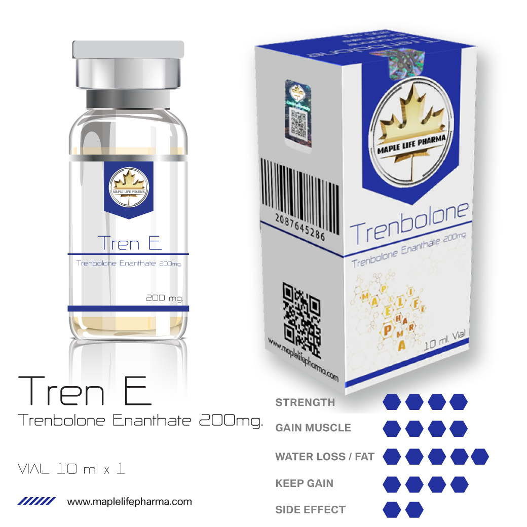 Maple.Tren-E is the Trenbolone of choice for whose not wanting to do frequent injections as with Maple.Tren-A. Being the slow released Enanthate ester, many users embrace this once-a-weeks -only injection regimen. The characteristics of Maple.Tren-E is exactly the same as for the other Trenbolone but due to its slower release, the full effect will be delayed a couple of weeks u til peak blood levels are reached and from there sustained with just one injection per week. No other steroid is as powerful as Trenbolone and whether the goal is maximum buildup of quality muscle mass or getting hard and ripped for contest, Maple.Tren-E is guaranteed to produce results.